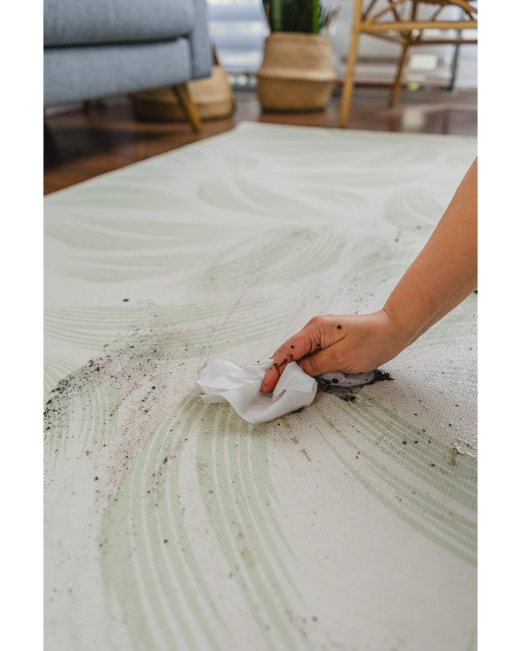- Prefiere productos de limpieza con ph neutro lo mismo que usas con tu bebé como o shampoo, evita productos que contengan cloro, exceso de alcohol, amonio, decolorantes o sustancias corrosivas. El uso de estos productos podría dañar tu Happymat a largo plazo.